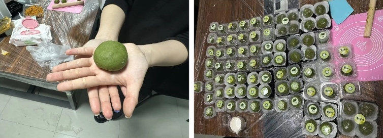 活动始初,老师与同学们投身其中,一同筹备青团制作的各类材料。大家各司其职,协作无间,新鲜的糯米粉与散发着清香的艾草汁缓缓交融。随后,同学们将豆沙、芝麻等馅料包入面团,在欢声笑语中,一颗颗圆润饱满的青团悄然诞生。