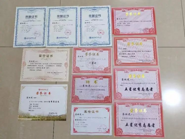 大学期间多次获得校一等奖学金、校二等奖学金,还荣获“我心中的宪法”演讲比赛三等奖、“最美网课笔记”大赛一等奖、五星志愿者称号、“蓝天行动”优秀志愿者、优秀寝室长称号等。通过cet-6,取得计算机二级证书。