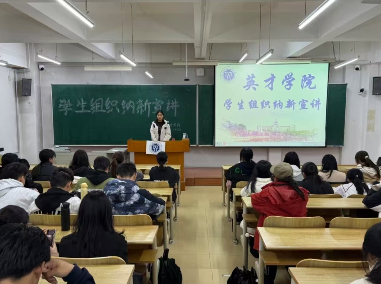 为推进英才学院学生组织纳新工作,充分调动同学们参与学院学生组织建设的积极性,为组织注入新鲜血液与创新活力。英才学院于2025年10月15日开展学生组织纳新宣讲会。英才学院各学生组织代表、2025级全体同学参加本次宣讲。