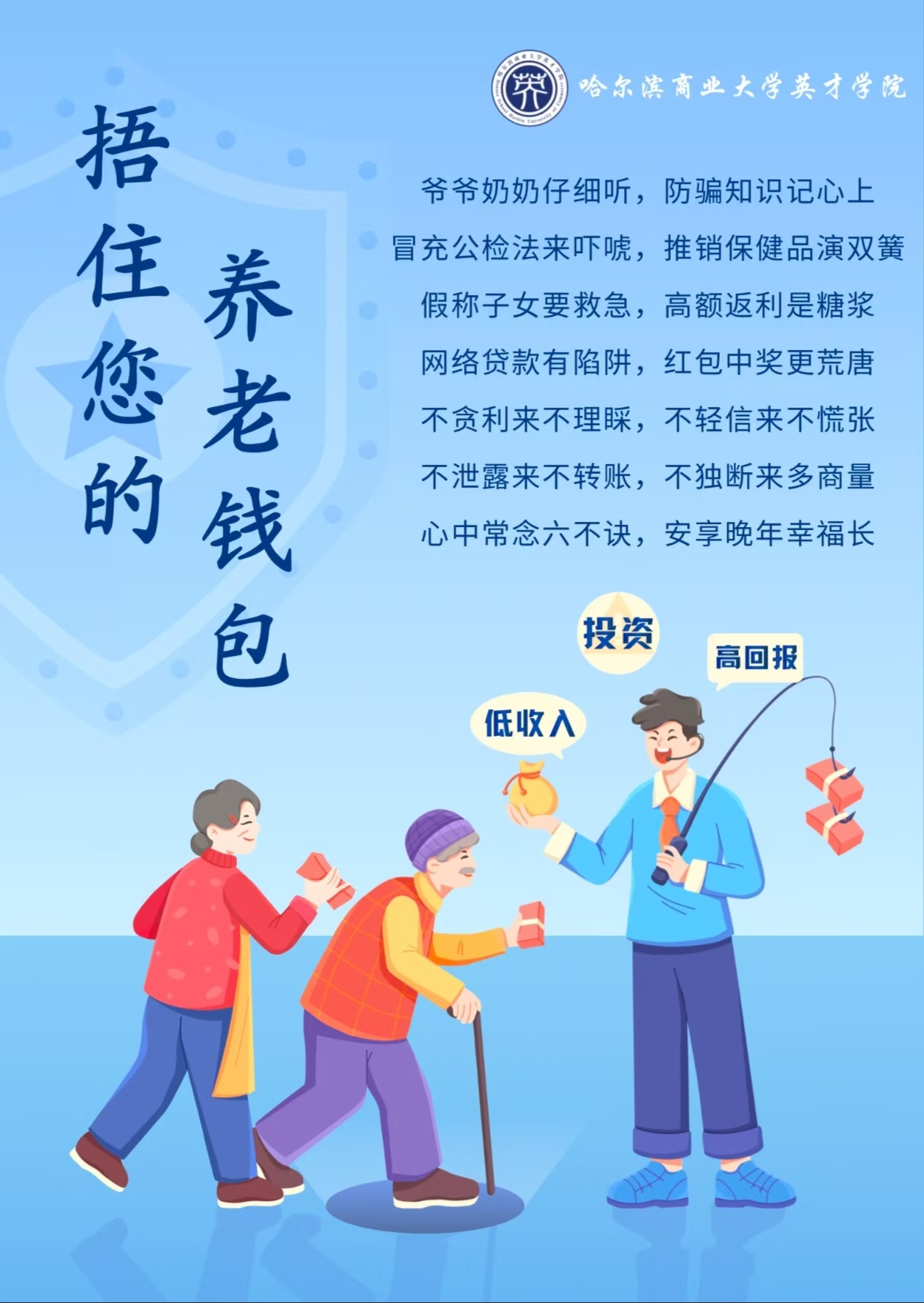 为筑牢老年人电信诈骗“防护网”,切实守护老年群体财产安全与合法权益,英才学院团委响应校团委2025年青年志愿者为老服务“金晖行动”号召,于10月23日在银河小区开展老年人电信诈骗防范宣传志愿服务活动。