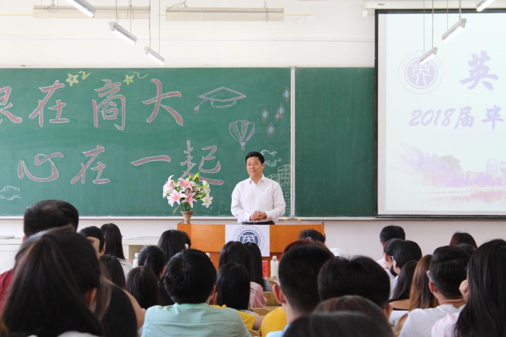 英才学院于2018年6月8日下午2点在3303教室召开“根在商大,心在一起——英才学院2018届毕业生欢送会”。出席本次活动的有我校党委书记、博士生导师孙先民教授,英才学院院长、博士生导师侯雪筠教授,英才学院党总支书记孙颖副教授,英才学院副院长贾绍华教授,任课教师代表外语学院张静雯副教授,英才学院教学秘书代晶辉副教授和英才学院辅导员段莹老师。大会由英才学院团委书记吴竞老师主持。