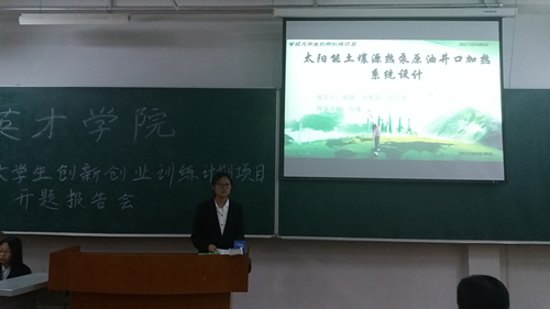 本次项目汇报涉及金融、医药、食品、能源利用等方面,其中涵盖《供给侧结构性改革视角下新型农业经营主体融资研究》、《对长期治疗阴虚内热型过敏咳嗽的膏制药物的开发》、《冷冻营养马铃薯饼工艺研究》、《太阳能土壤源热泵原油井口加热系统设计》等10个课题。大会伊始,各申报项目负责人就本研究项目的立项背景、研究内容、研究方法、创新与特色、预期成果、经费预算等相关情况进行阐述。各位评委老师以认真、严谨的态度考察了项目负责人掌握专业知识的熟练程度,对同学们方案的可行性、研究内容的科学性、研究项目的创新性等方面进行了提问。针对评委老师提出的问题,同学们镇定自若,思维敏捷,积极回答老师们的问题。同时,老师还指出了项目中的闪光点和不足,并提出了建设性意见和建议,帮助同学们进一步明确了项目研究的内容、思路、重点和难点。项目成员表示,答辩会后将根据老师的意见认真修改自己的项目申请书,及时开展研究,提升调研能力,并保证按期结题。