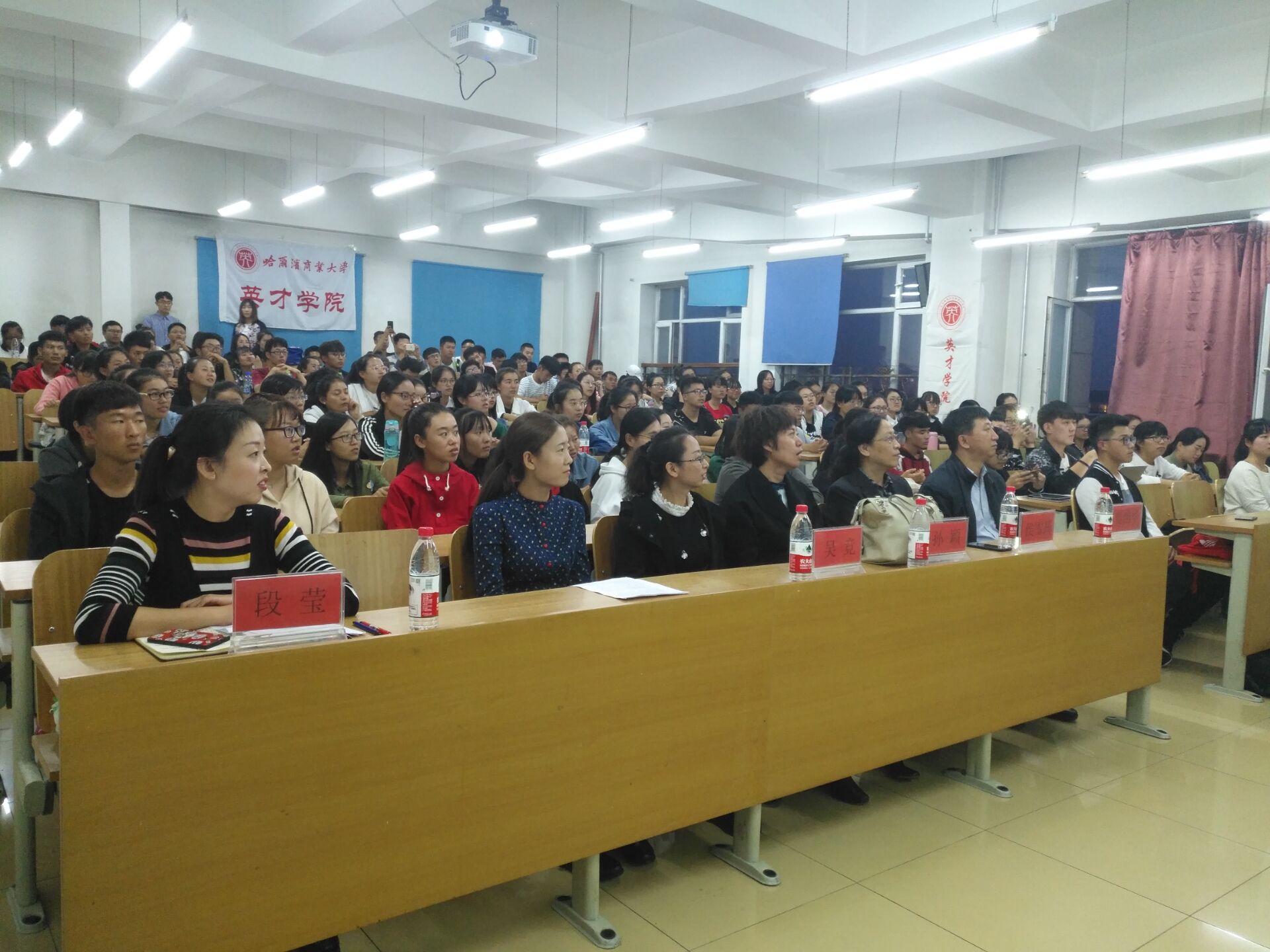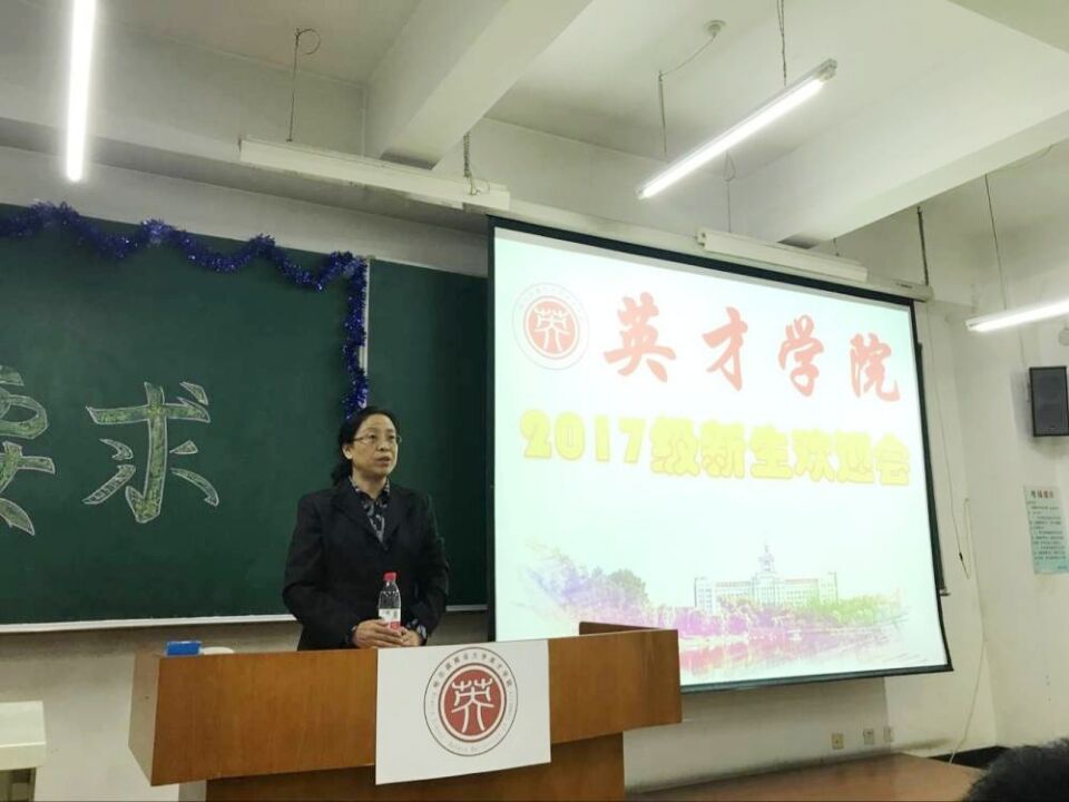 英才学院于2017年9月20日下午5点30分在主楼0501教室举行2017级新生欢迎会。出席本次大会的领导和老师有英才学院院长侯雪筠教授、英才学院教学院长贾绍华教授、英才学院党总支副书记孙颖副教授、以及英才学院团委书记吴竞老师。大会由英才学院2017级辅导员段莹老师主持,2017级全体新生和部分老生代表参加了本次大会。