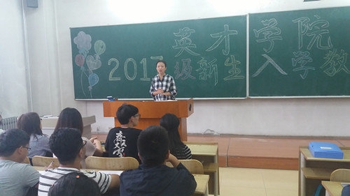 英才学院于2017年8月27日下午5点在主楼0101教室召开2017级新生入学教育大会。出席本次大会的有2017级新入学的137名新生及学院各学生组织主要负责人以及新生导生,本次大会由2017级新生辅导员段莹老师主持。