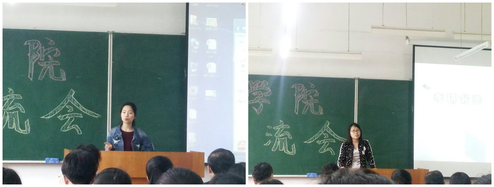 大会首先由2013级4位优秀代表传授考研及出国的经验和心得,分别是被保送到北京师范大学的邱英杰、获得英国伦敦大学录取通知的楼雨薇、成功考入华北电力大学的王慧丽和中南财经政法大学的史佳昕。邱英杰同学从保研资格、条件拆解、院校定位、夏令营等方面分享保研经验;楼雨薇同学分享了在留学方面的经验,她从准备阶段、申请阶段、申请后阶段等方面谈及了她的感想与建议;王慧丽同学和史佳昕同学分别从学术型硕士角度和专业型硕士角度细化考研复习过程,分享了英语及数学的复习经验、推荐了参考书目、给出了复试的建议,希望大家确定好目标,选择最适合自己的学校和专业。