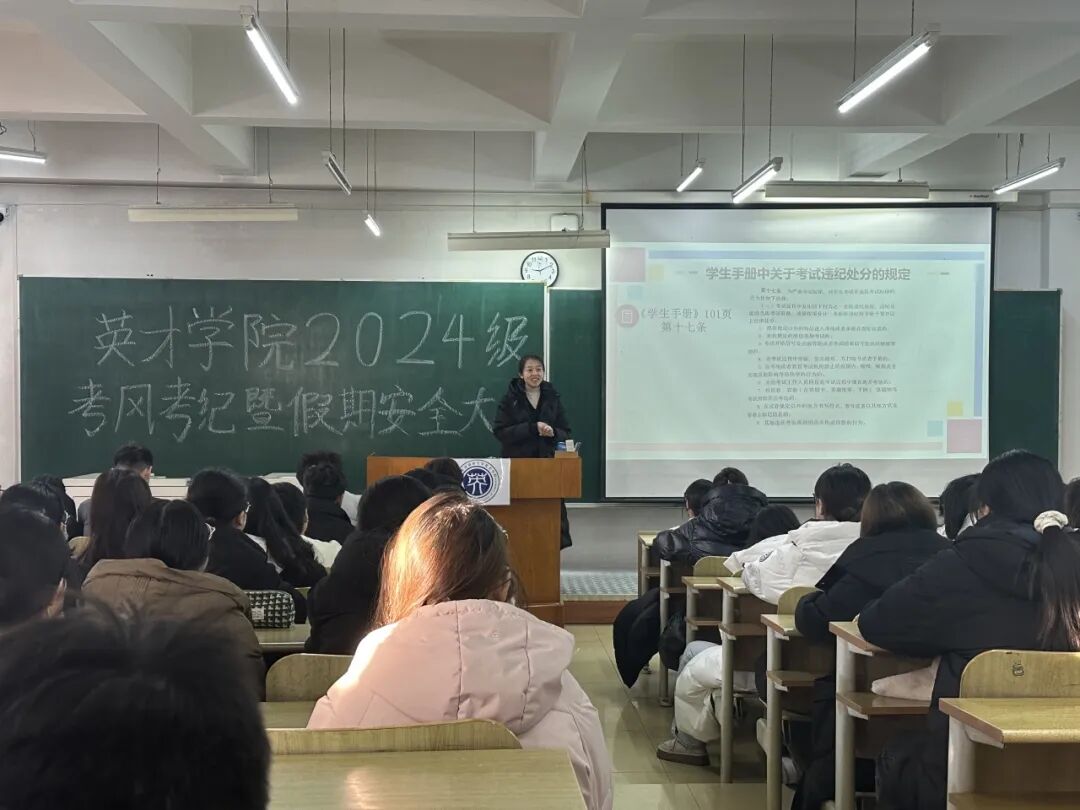 为进一步加强学风建设,端正考风考纪,着力提升学生的安全意识和自我保护能力,近日,英才学院各年级辅导员组织全体同学召开考风考纪暨假期安全教育大会。