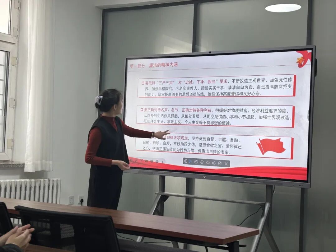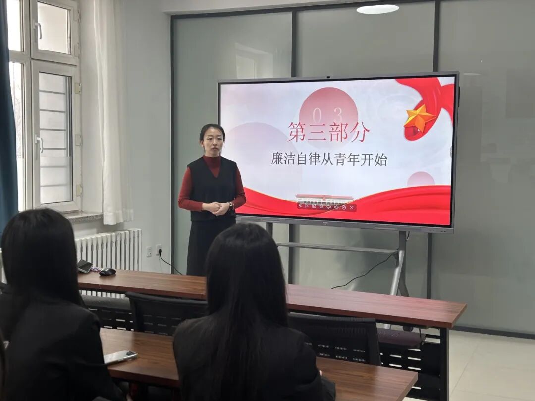 最后,段莹老师呼吁学生干部要从青年时期开始培养廉洁自律的意识。她勉励大家要树立正确的人生观、价值观和世界观,不断提升自己的道德修养和综合素质。只有这样,才能在未来的学习和工作中担当起更大的责任,为社会做出更大的贡献。