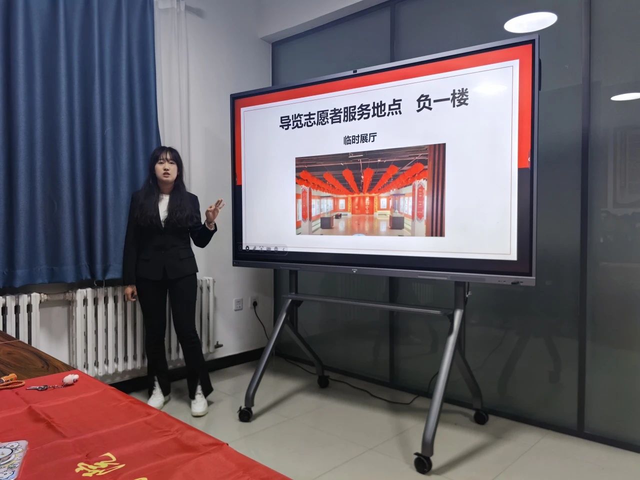 刘成成同学详细地向志愿者们介绍了黑龙江省博物馆岗前培训流程、黑龙江省博物馆的各个服务地点以及打卡机的具体位置,列举出作为导览志愿者可能会遇到的问题,并一一给出了解答。最后,以自己的亲身经历向志愿者们分享在做省博志愿者时所遇到的意外惊喜,让志愿者们对志愿服务工作充满了期待,也让志愿者们对志愿服务的意义有了更全面的认识。