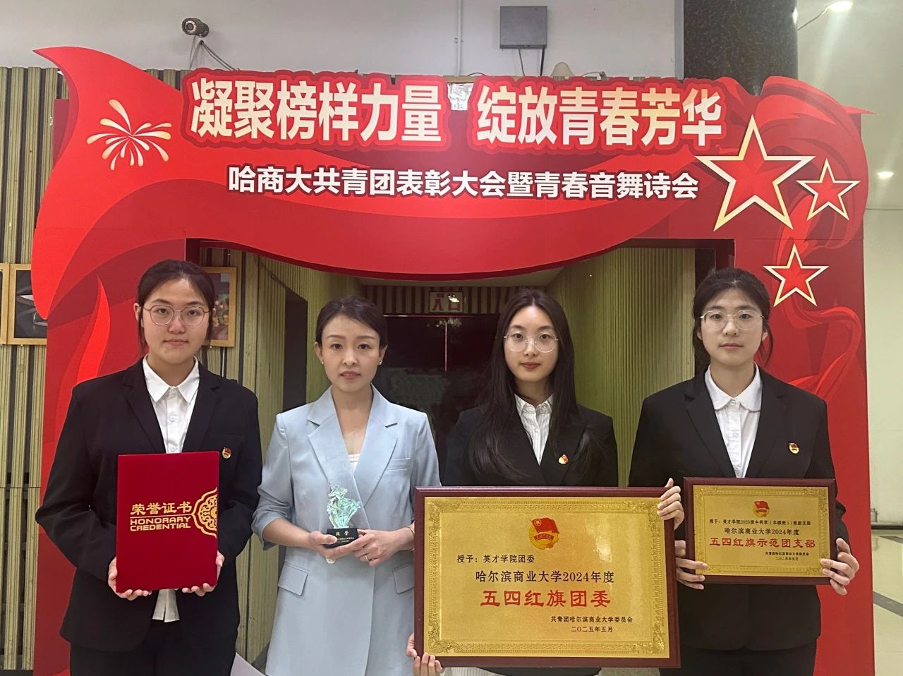 为深入学习贯彻党的二十大精神,进一步贯彻落实习近平总书记关于青年工作的重要思想,表彰先进典型,引领广大青年坚定不移听党话、跟党走,争做堪当民族复兴重任的时代新人,校团委于5月27日17:30在B区大礼堂举办“凝聚榜样力量 绽放青春芳华”哈商大共青团表彰大会暨青春音舞诗会。