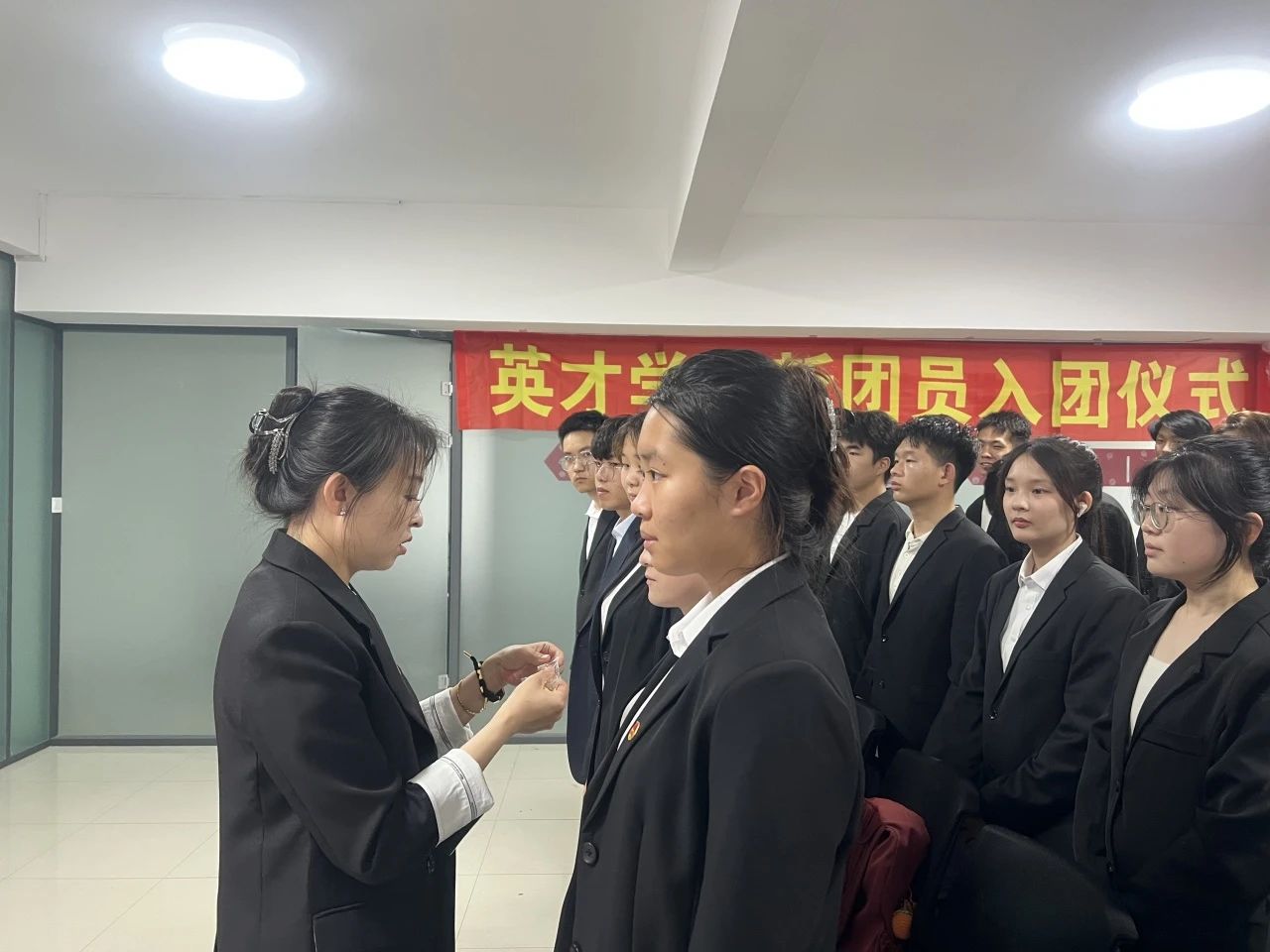 2025年6月16日,英才学院于“一站式”学生社区举行2025年上半年新团员入团仪式。本次入团仪式旨在激励新团员们坚定理想信念,增强团员意识,肩负起新时代青年的责任与使命。学院团委书记段莹老师、党员代表、优秀团员代表、新团员参加了此次仪式。