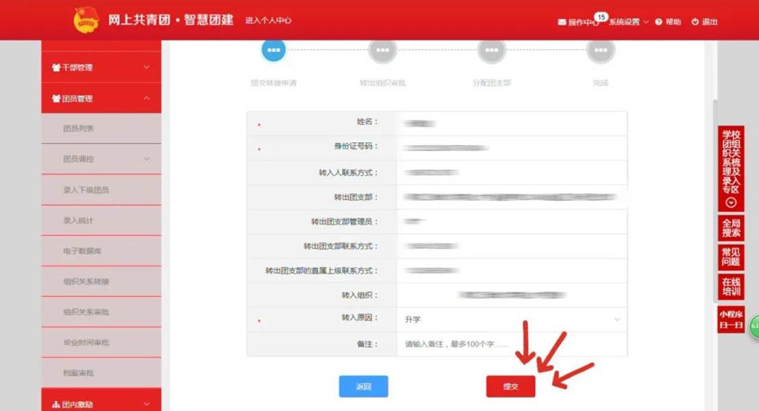 2.转接时提示团员身份未通过,请查看系统内是否上传电子版《入团志愿书》,并审核通过。