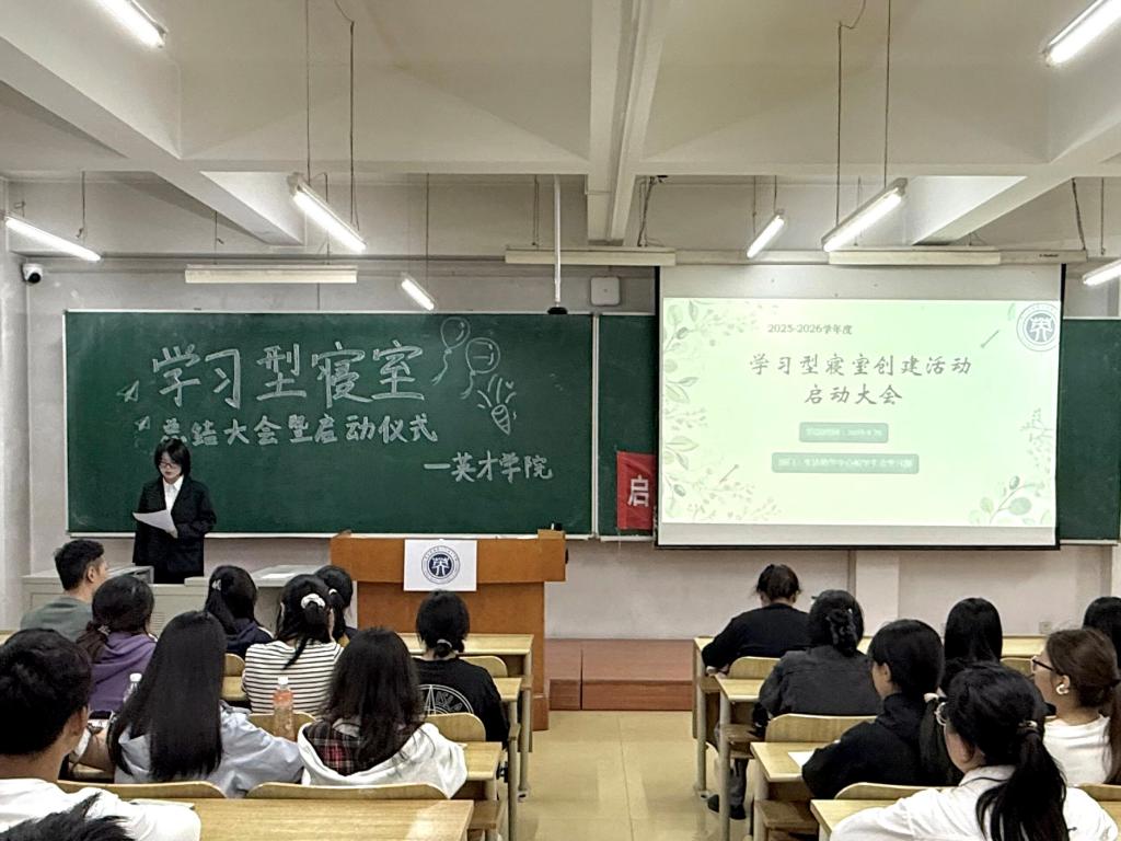 为落实学校加强学风建设的工作要求,结合学院人才培养目标,激发学生学习动力、培养良好的学习习惯,英才学院于2025年9月25日举行第七届“学习型”寝室表彰大会暨第八届“学习型”寝室启动仪式,英才学院正科级辅导员李超宇老师出席此次活动。