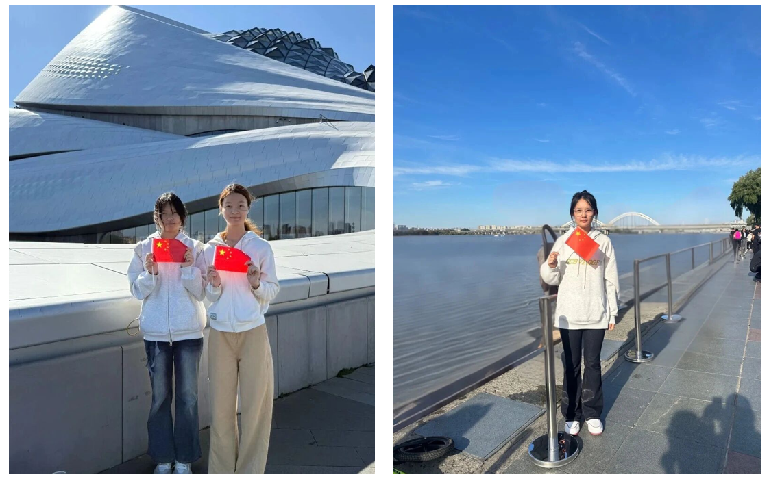 国旗为伴,青春为景。同学们手持国旗,留下与国旗的创意合影——每一张照片,都记录下青春与国旗的同框,将他们对祖国的热爱,深深烙印在每一个瞬间里。