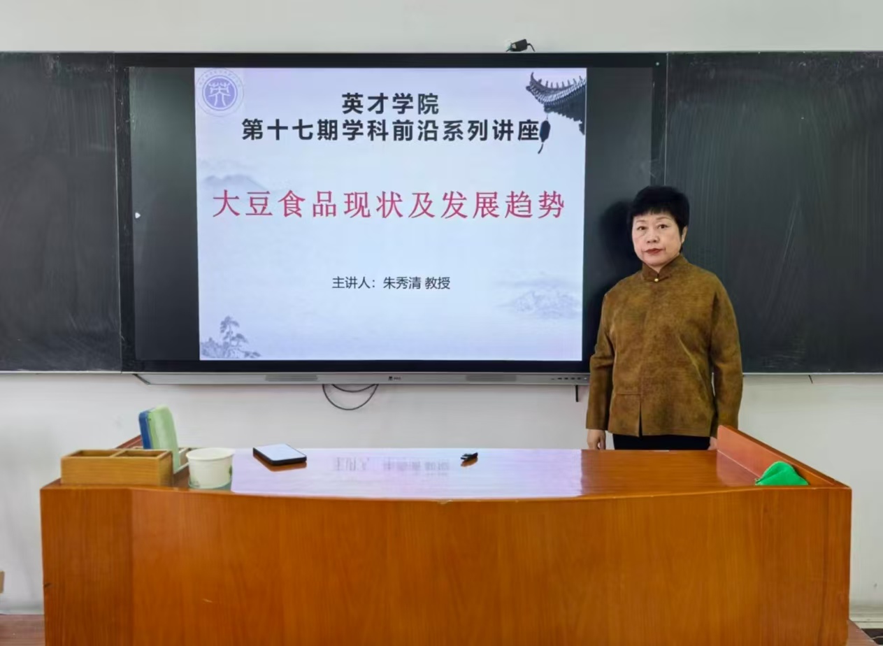 为强化学生专业知识,拓宽学术视野,英才学院于10月15日晚在0722举办了第十七期学科前沿系列讲座。本次讲座邀请食品工程学院朱秀清教授,讲座主题为“大豆食品现状及发展趋势”。